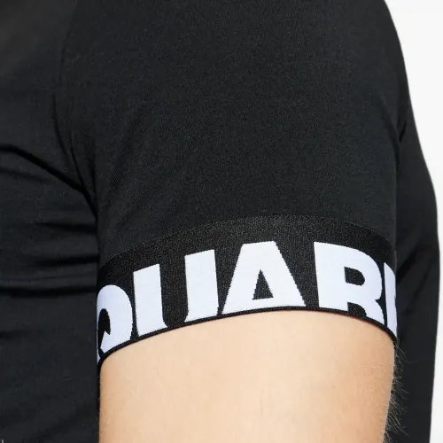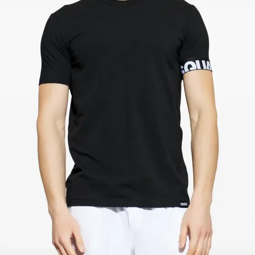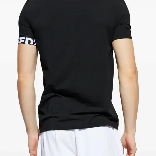 черная хлопковая футболка с круглым вырезом и короткими рукавами с отделкой