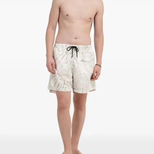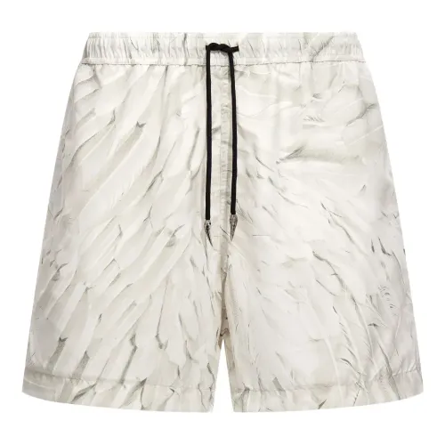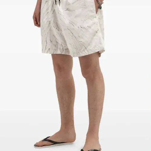 белый с принтом перьев, застёжка на шнурок, нашивка с логотипом, боковые прорезные карманы. Пожалуйста, примерьте купальник поверх собственного белья.