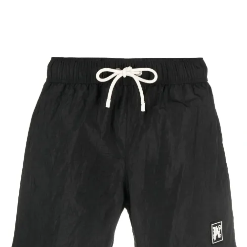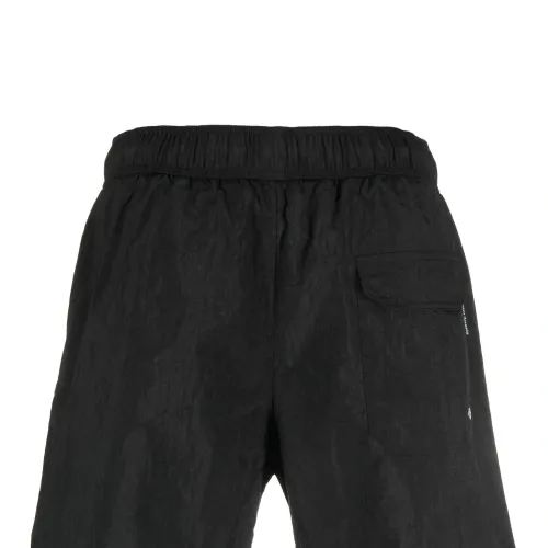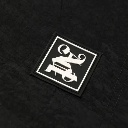 Черный, жатый эффект, нашивка с логотипом спереди, кулиска на талии, два прорезных кармана по бокам и карман с клапаном сзади. Пожалуйста, примеряйте купальники и пляжные шорты только поверх собственного белья.