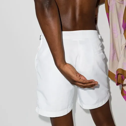 Регулируемые ремешки на поясе, потайная застежка спереди, прямой крой, длина до бедер, два прорезных кармана по бокам и задние карманы с листочкой. Цвет: белый. Пожалуйста, примеряйте купальники и пляжные шорты только поверх собственного белья.