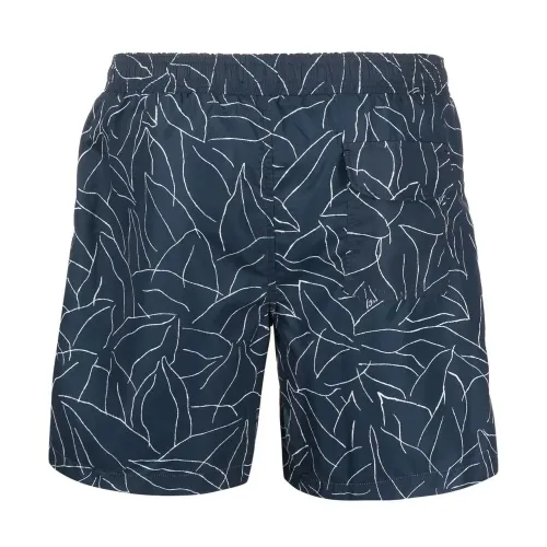 Темно-синий, белый, принт с изображением листьев, сплошной принт с логотипом и эластичный пояс на шнурке. Пожалуйста, примеряйте купальники и пляжные шорты только поверх собственного белья.