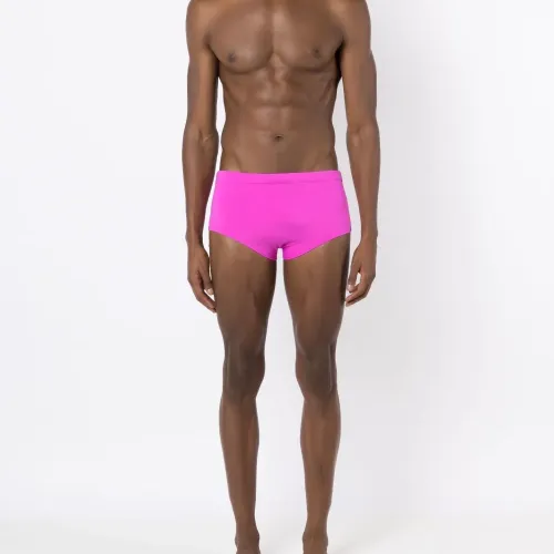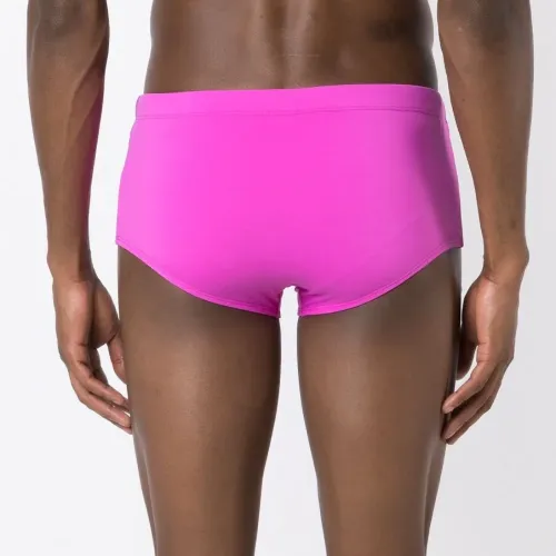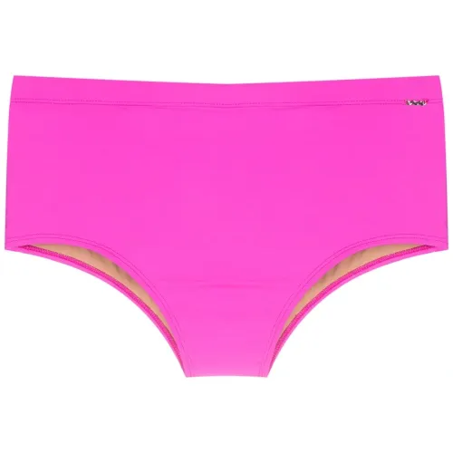 Фуксия, эластичный материал, металлический логотип и средняя посадка. Пожалуйста, примеряйте купальники и пляжные шорты только поверх собственного белья.