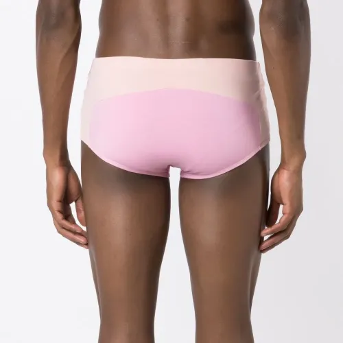 Розовый, бежевый, стиль колор-блок, эластичный материал и средняя посадка. Пожалуйста, примеряйте купальники и пляжные шорты только поверх собственного белья.