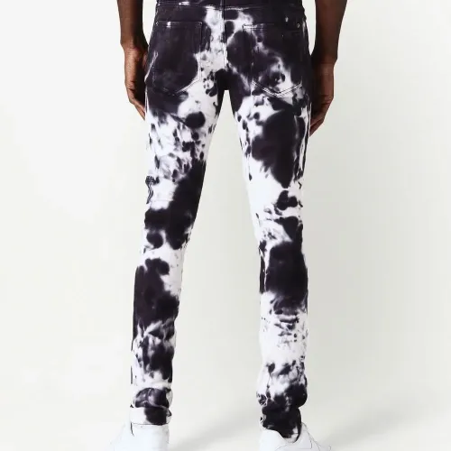 Белый, темно-фиолетовый, эластичный хлопок, принт тай-дай, облегающий крой, застежка на молнии и пуговице спереди и пять карманов.