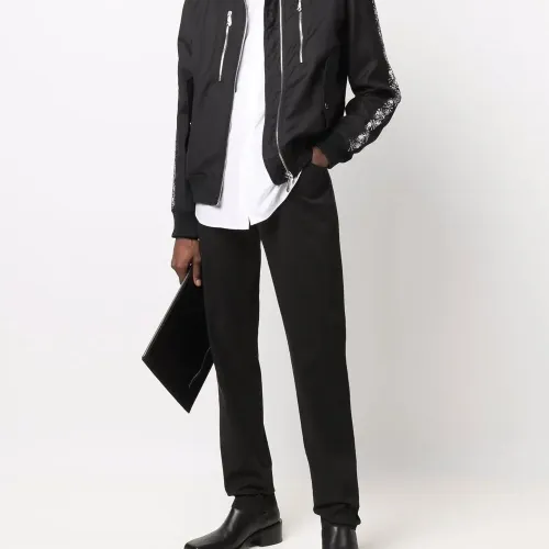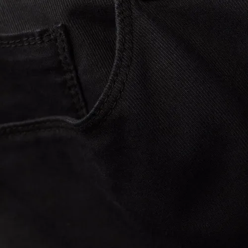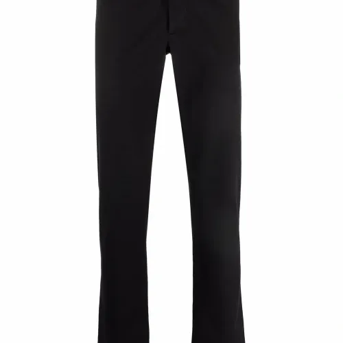 Нашивка с логотипом сзади, петли для ремня, потайная застежка спереди, классическая пятикарманная модель и узкий крой. Цвет: черный.
