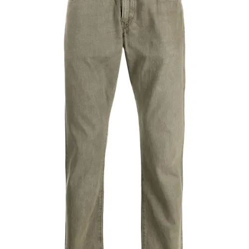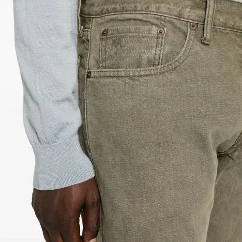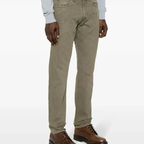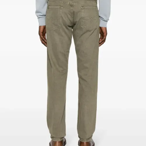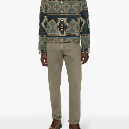 Нашивка с логотипом сзади, застежка на молнии и пуговице спереди и пять карманов.