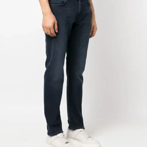 Индиго, эластичный хлопок, деним, потайная застежка на молнии и пуговицах, пять карманов, узкий крой и прямой подол. Узнать больше о том, какие товары получают отметку «Ответственный выбор», можно из материала «Как мы оцениваем экологичность и этичность».