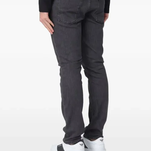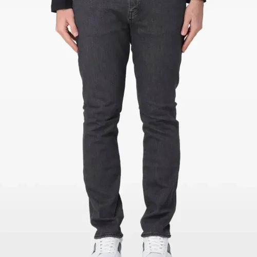 чёрные джинсы с пятью карманами и нашивкой с логотипом сзади