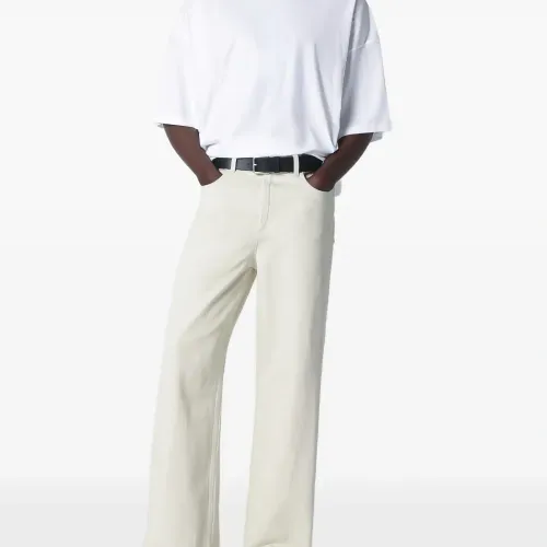 белые джинсы из выбеленного денима с застежкой на пуговицы, широкими штанинами, пятью карманами и шлевками для ремня