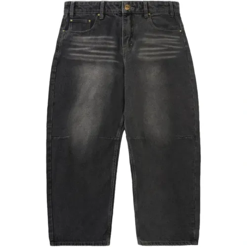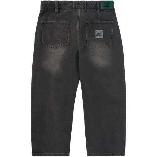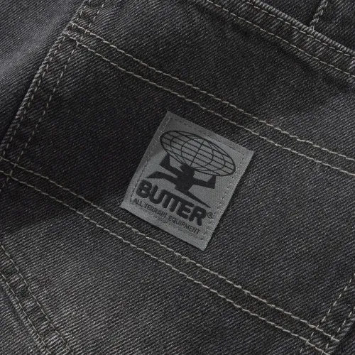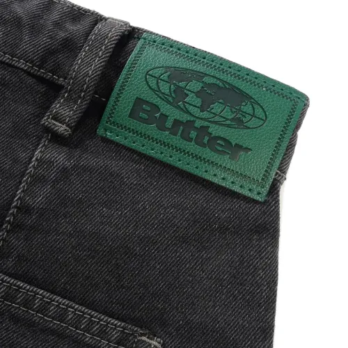 выцветшие черные широкие джинсы с эффектом потертости, вышитым логотипом, накладной нашивкой сзади и пятью карманами