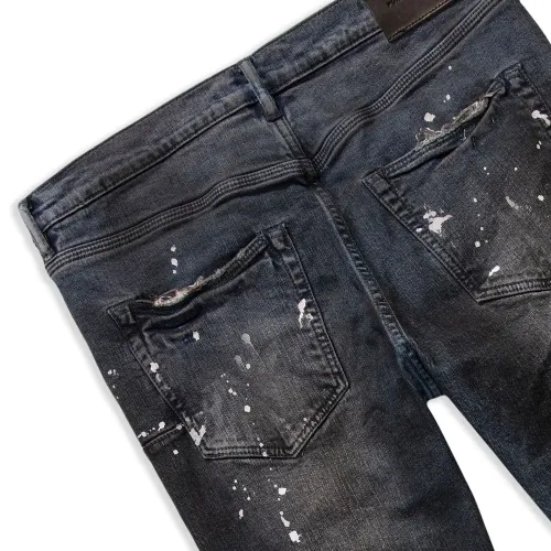 Индиго, эластичный хлопок, эффект разбрызганной краски, эффект потертости, нашивка с логотипом сзади, облегающий крой, потайная застежка на молнии и пуговицах, петли для ремня и пять карманов.