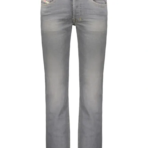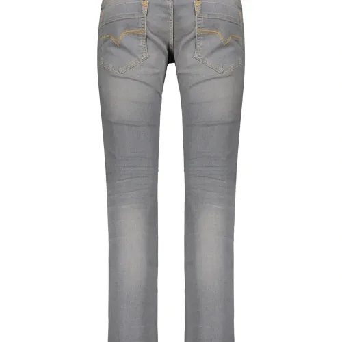 серый цвет с эффектом стирки, дизайн с пятью карманами, застежка на пуговицы