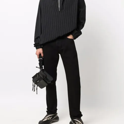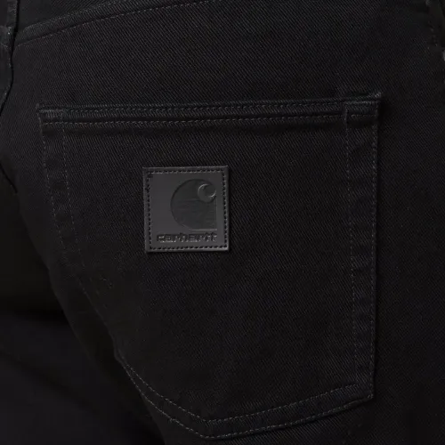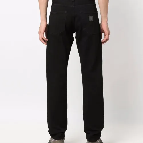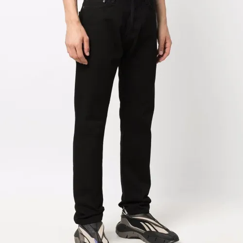 Нашивка с логотипом сзади, петли для ремня, застежка на молнии и пуговице спереди и классическая пятикарманная модель. Цвет: черный. .