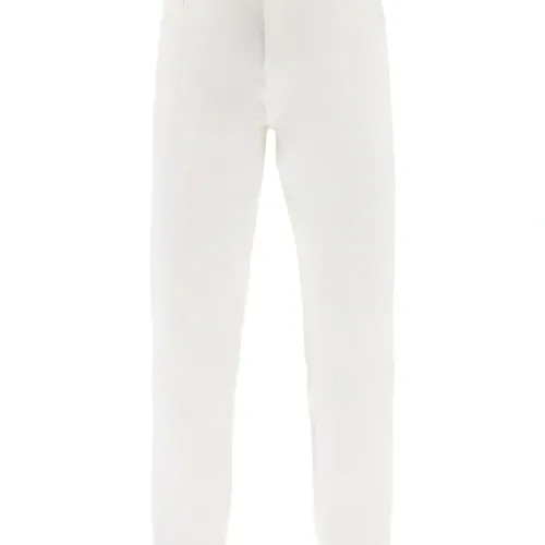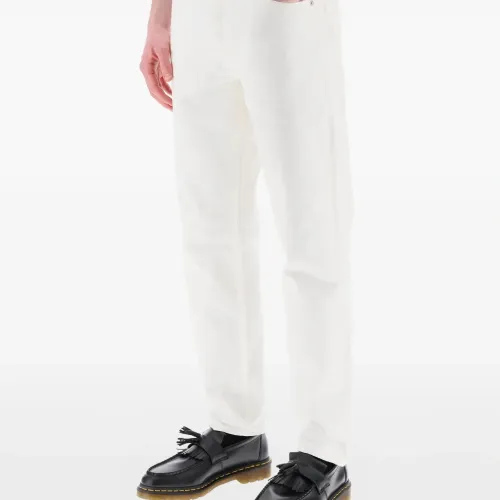 белый пять карманов застежка на пуговицу и молнию прямые брючины шлевки для ремня