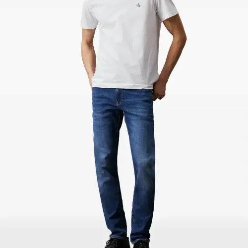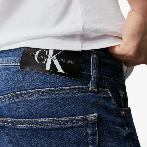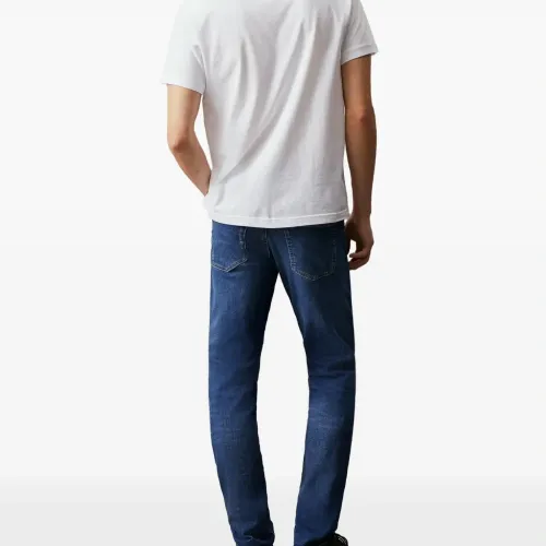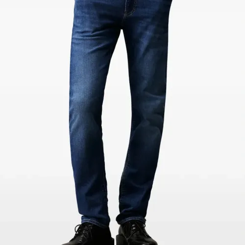 синяя отделочная строчка, шлевки для пояса, задний логотипный патч, пять карманов