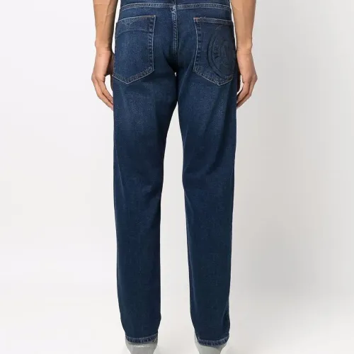 Прямой крой, застежка на молнии и пуговице спереди, средняя посадка, классическая пятикарманная модель и петли для ремня.