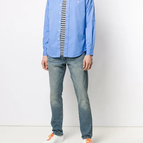 Классические джинсы кроя слим от Polo Ralph Lauren (Поло Ральф Лорен). Средняя посадка, пояс с петлями для ремня, планка на пуговицах спереди и классическая пятикарманная модель. Цвет: синий.