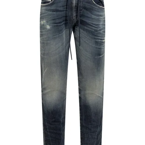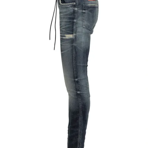 синий эффект потертости застежка на кулиску вышитый логотип выцветшая стирка пять карманов