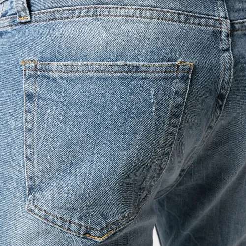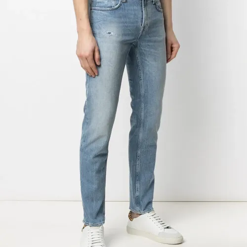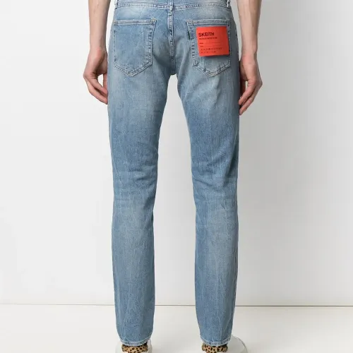 Нашивка с логотипом сзади, ширинка на пуговицах, петли для ремня, классическая пятикарманная модель и прямой крой.