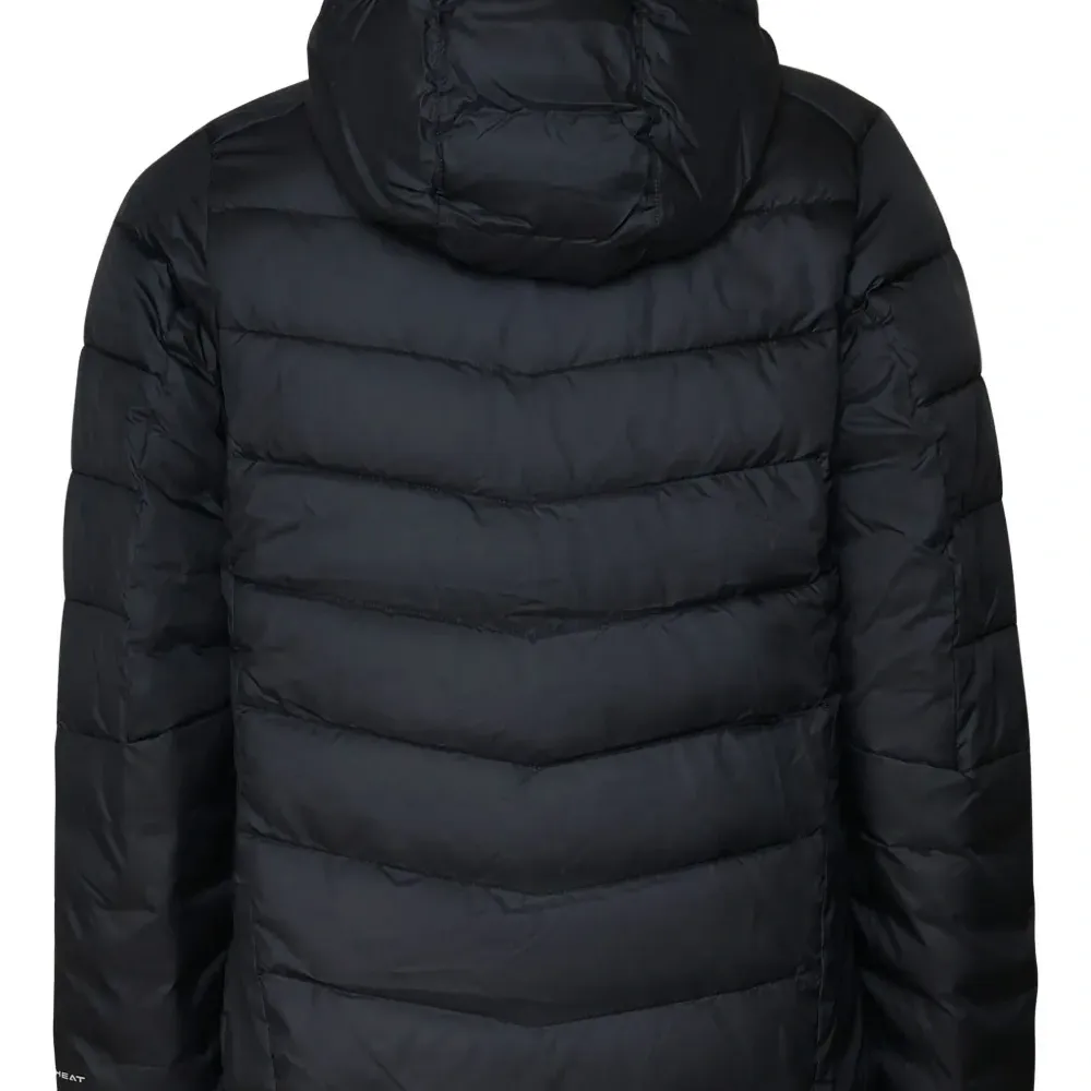 пуховик с капюшоном и логотипом