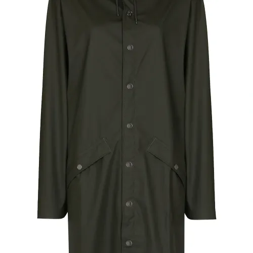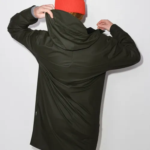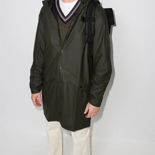 Оливково-зеленый, водонепроницаемый материал, ветронепроницаемый материал, без эффекта утяжеления, штормовая заслонка, затягивающийся на шнурок капюшон, застежка на кнопках спереди, длинные рукава, два кармана с клапанами по бокам, длина миди и прямой подол. . Узнать больше о том, какие товары получают отметку «Ответственный выбор», можно из материала «Как мы оцениваем экологичность и этичность».