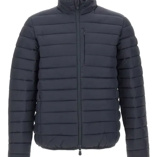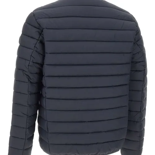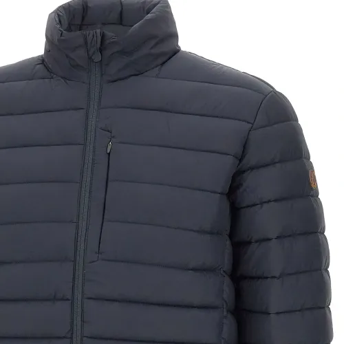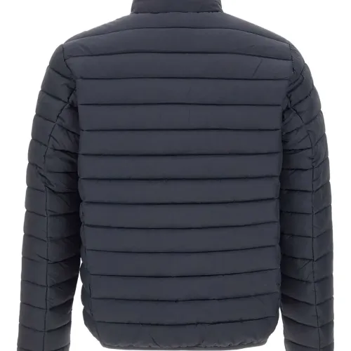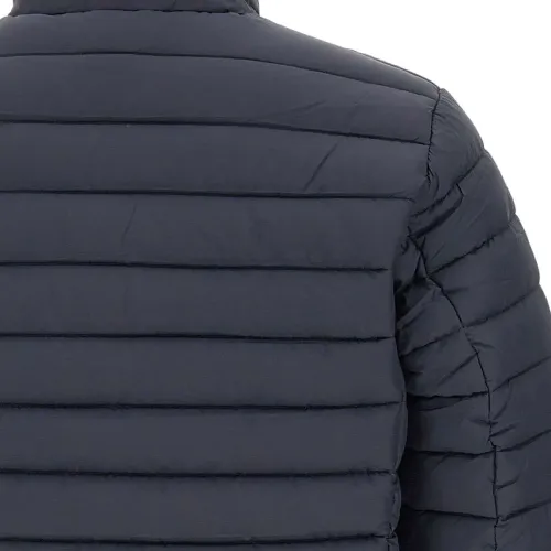 темно-синий стеганый дизайн застежка-молния спереди длинные рукава нагрудный карман на молнии