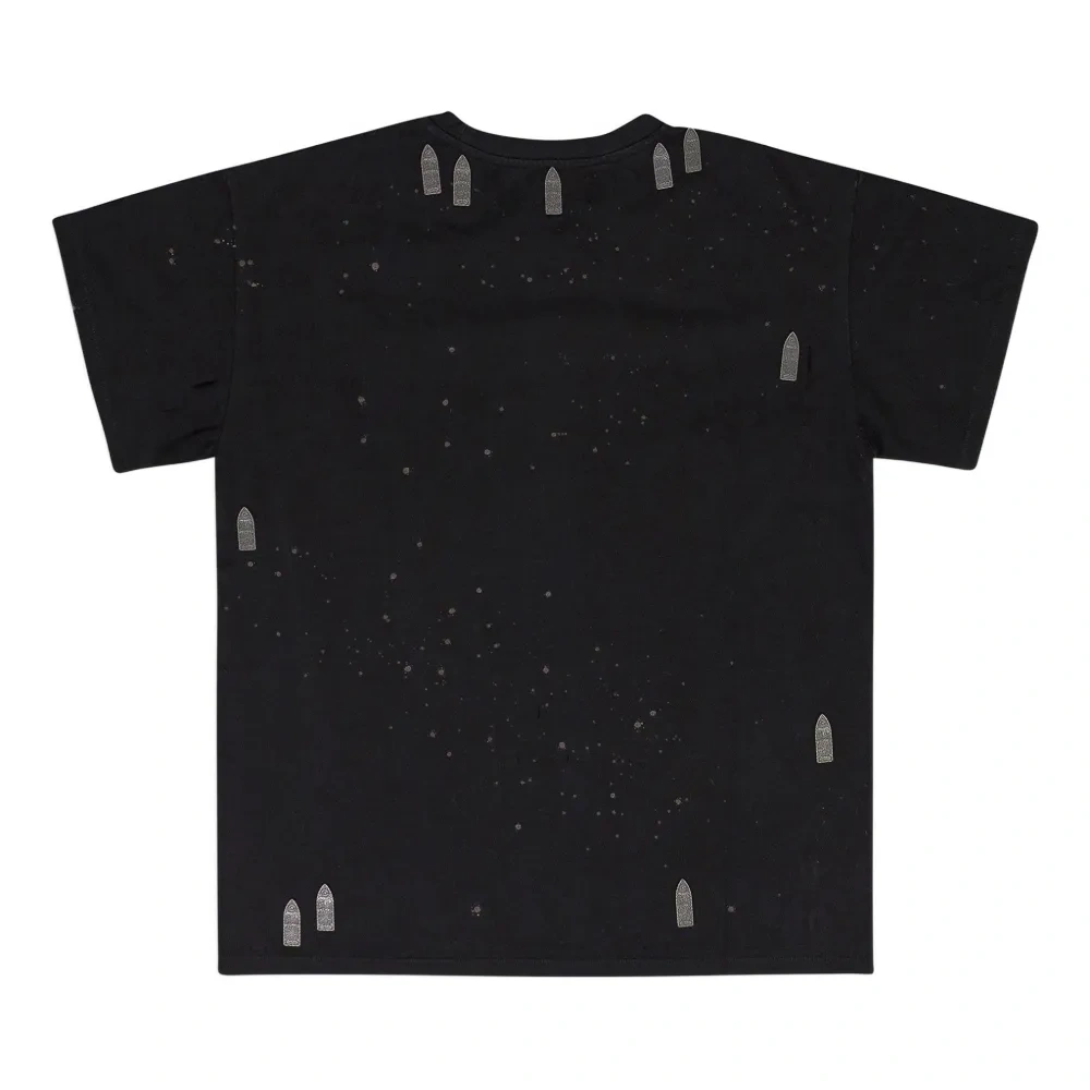 черная футболка с графичным принтом, короткими рукавами и круглым вырезом