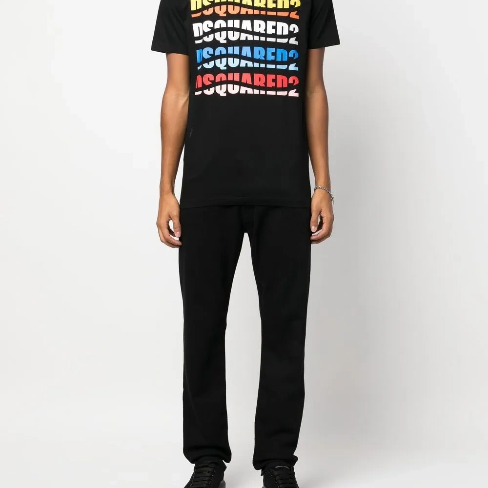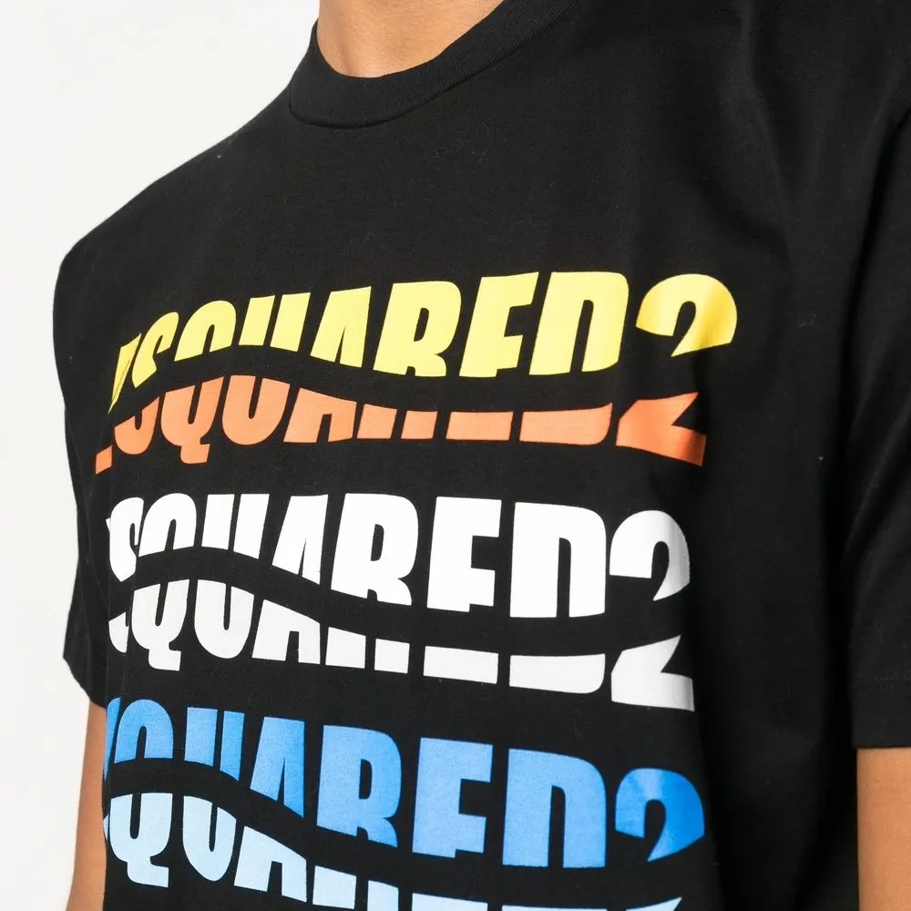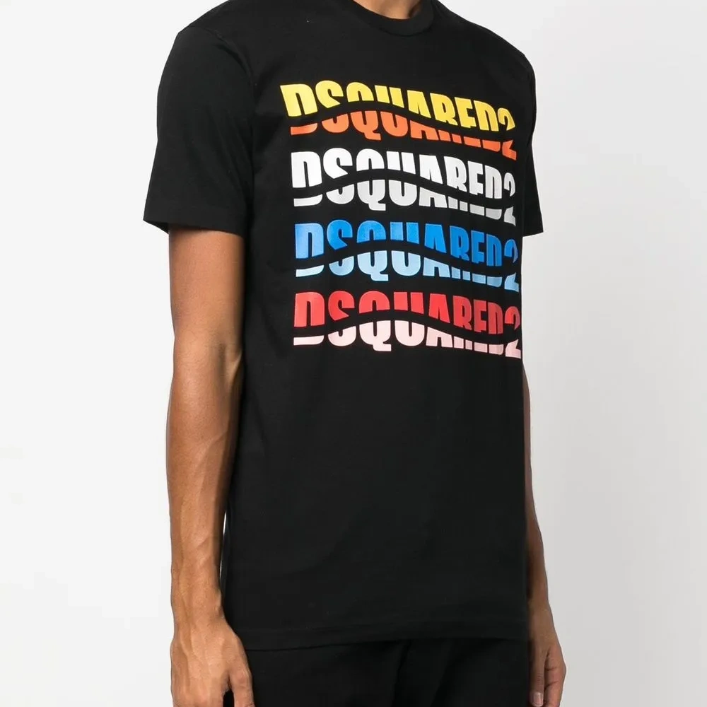 Черный/разноцветный, хлопок, ткань джерси, логотип спереди, круглый вырез, короткие рукава и прямой подол.