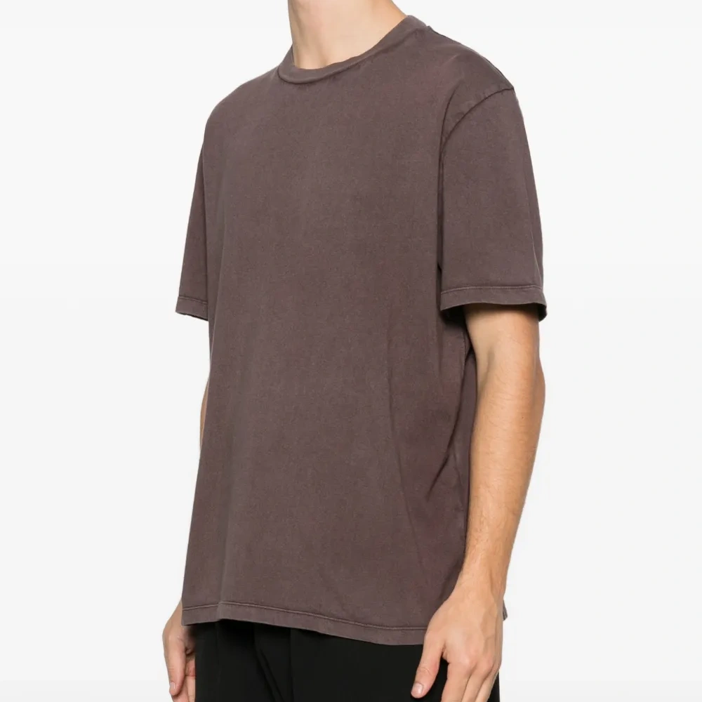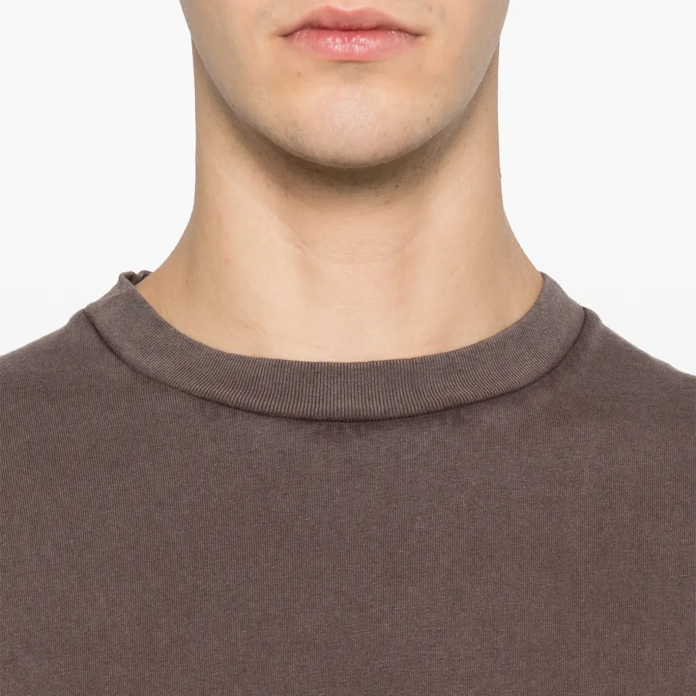 коричневая футболка с круглым вырезом, короткими рукавами и прямым подолом