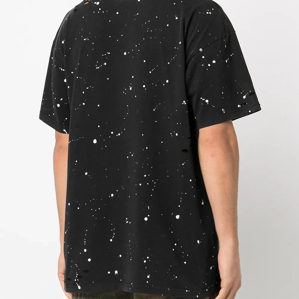 Черный/разноцветный, хлопок, эффект разбрызганной краски, графичный принт спереди, круглый вырез, короткие рукава и прямой подол.
