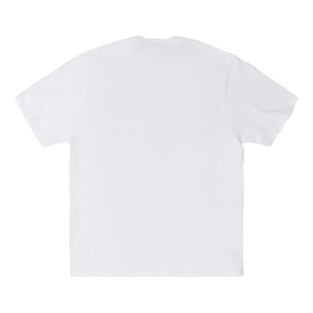 белая футболка с принтом логотипа, короткими рукавами и круглым вырезом