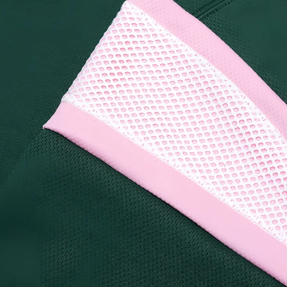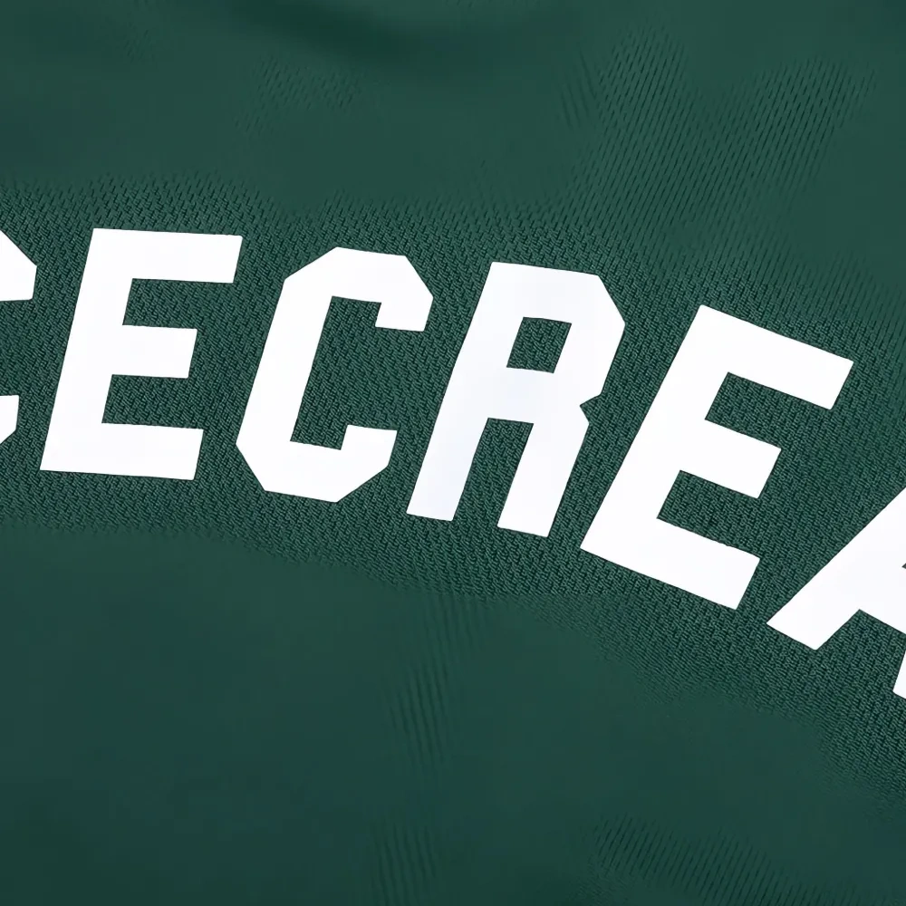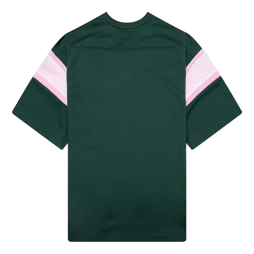 весёлого зелёного цвета футболка с круглым вырезом, короткими рукавами из сетки и принтом-логотипом