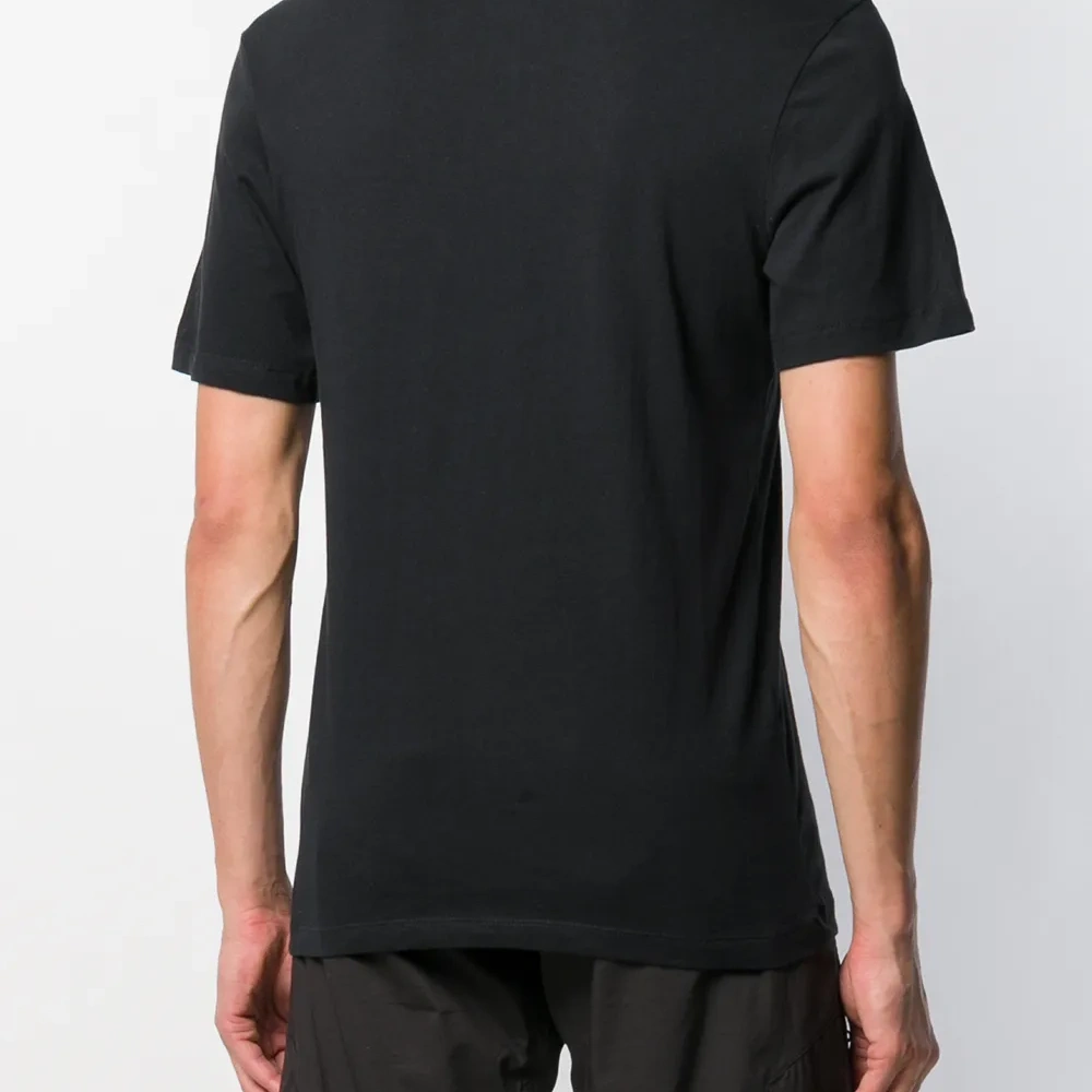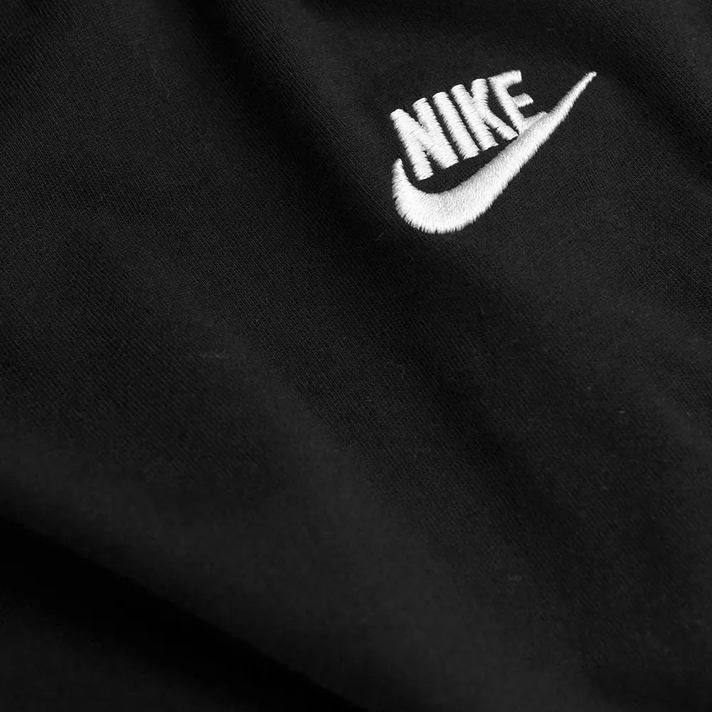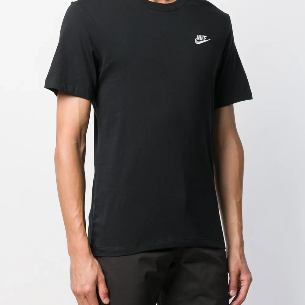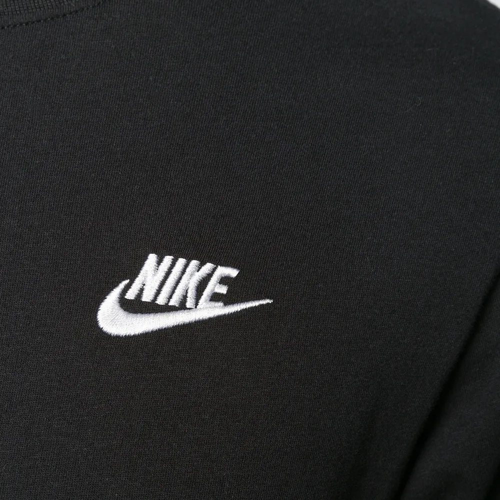 Футболка с логотипом от Nike (Найки). Круглый вырез, фирменная галочка Nike и короткие рукава. Цвет: черный.
