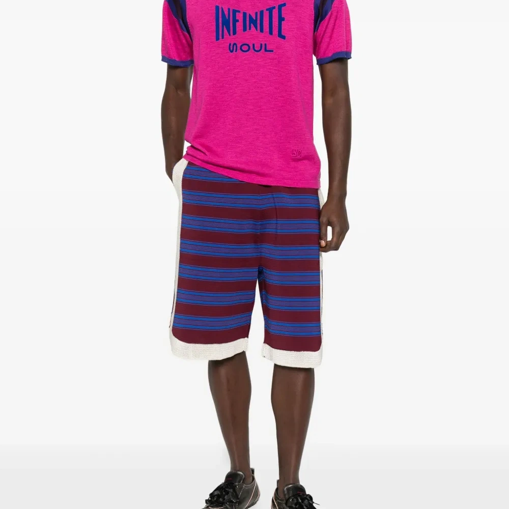 розовый флокированный слоган короткие рукава рубчатый круглый вырез полосатая отделка прямой низ