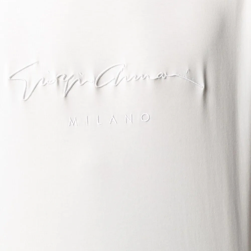 Ткань джерси, вышитый логотип на груди, круглый вырез и короткие рукава. Цвет: белый.