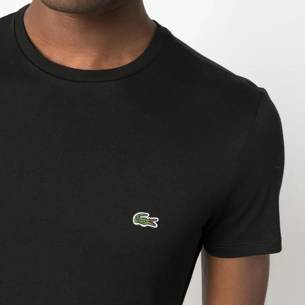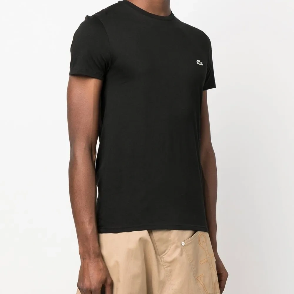 Черная хлопковая футболка с круглым вырезом от Lacoste.