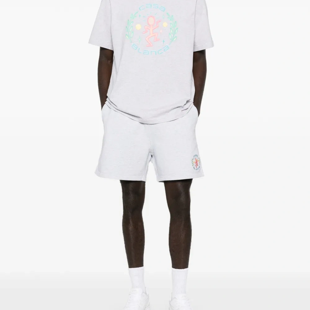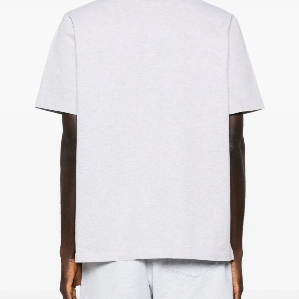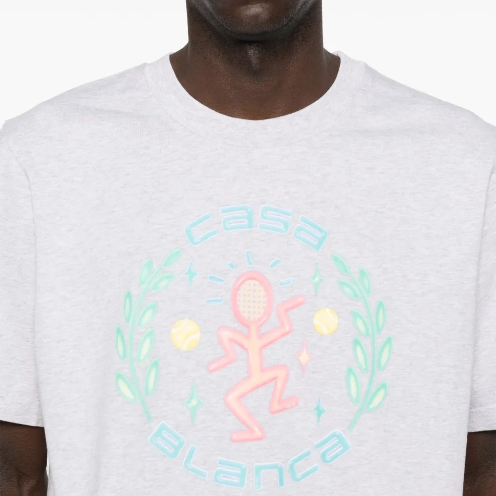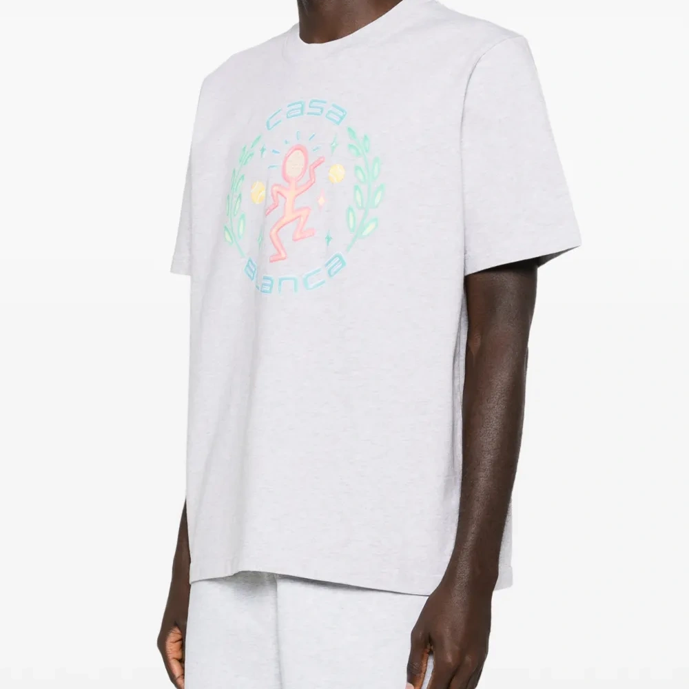 Серая футболка с круглым графическим принтом, короткими рукавами и круглым вырезом