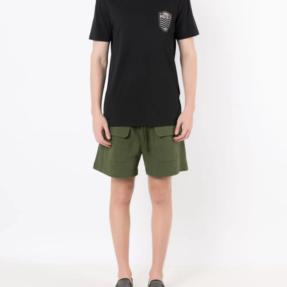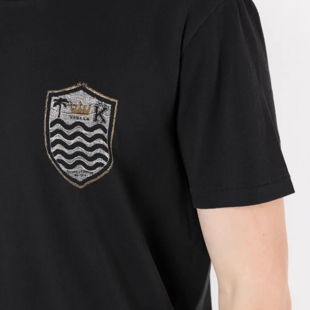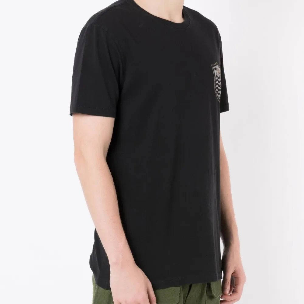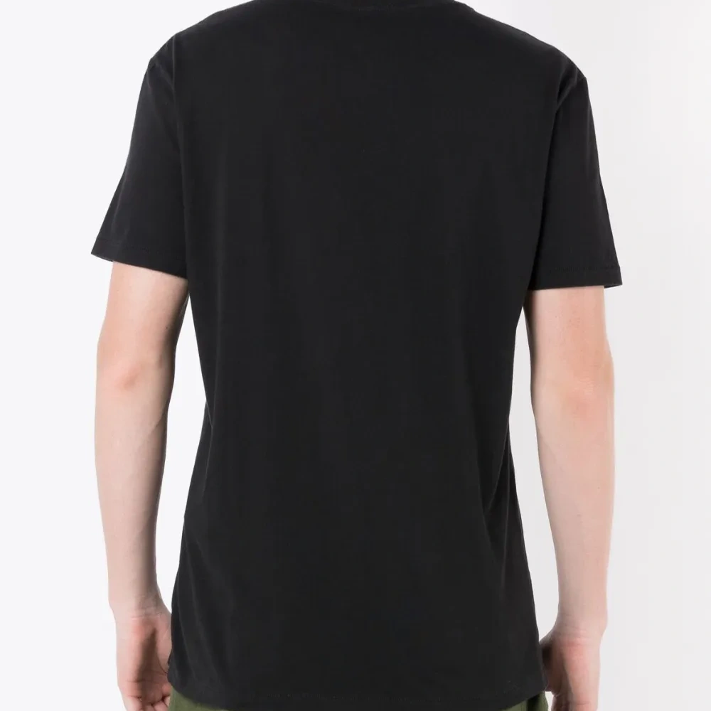 Черный, хлопок, принт на груди, круглый вырез, короткие рукава и прямой подол.
