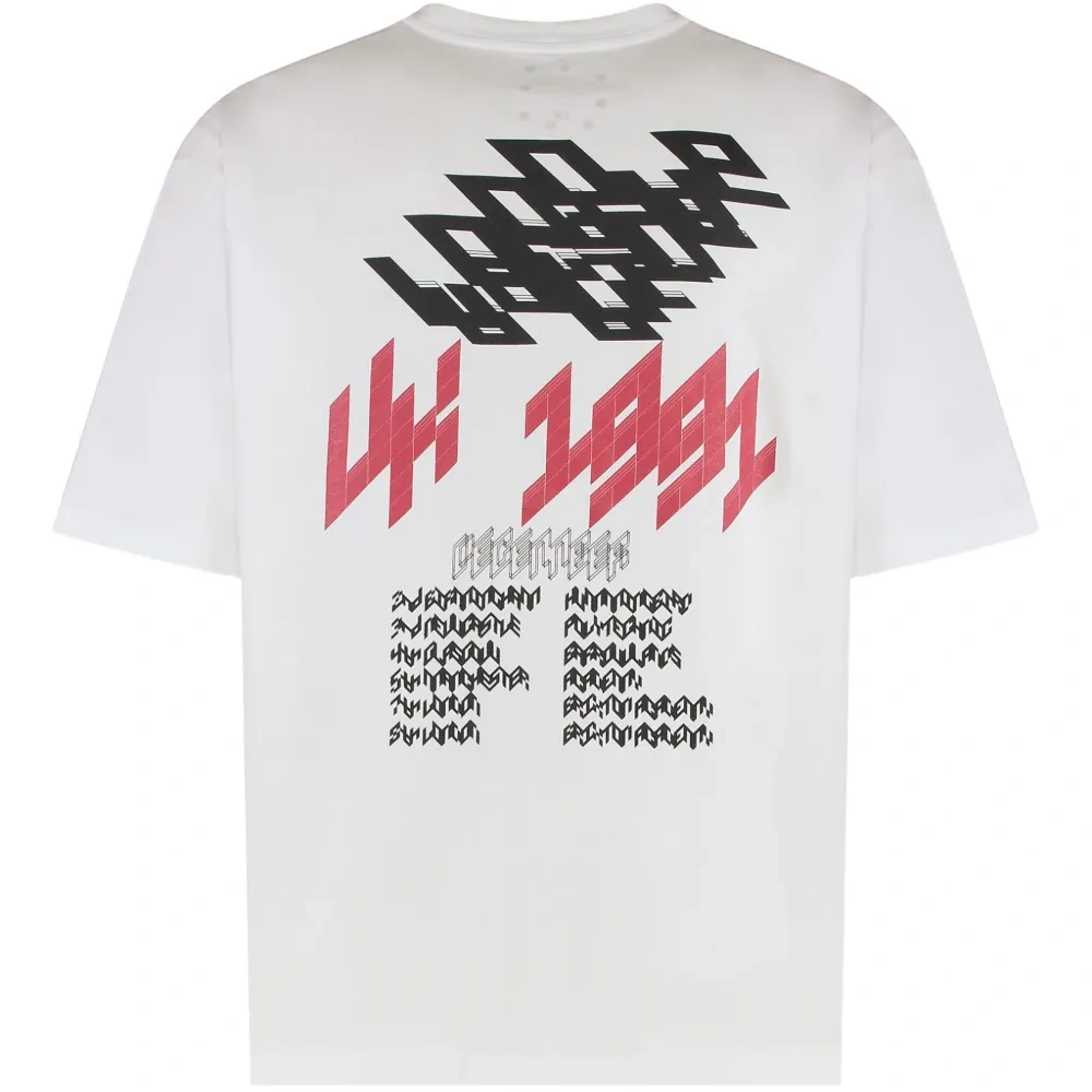 белая футболка с круглым вырезом и короткими рукавами с графическим принтом