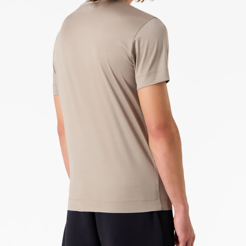Серо-коричневый, круглый вырез, вышитый логотип на груди, короткие рукава, эластичный материал и прямой подол. Этот товар как минимум на 50% состоит из материалов, которые признаны более безопасными для окружающей среды, и/или произведены с использованием методов, которые помогают сократить потребление воды и химических веществ. Узнать больше о том, какие товары получают отметку «Ответственный выбор», можно из материала «Как мы оцениваем экологичность и этичность».