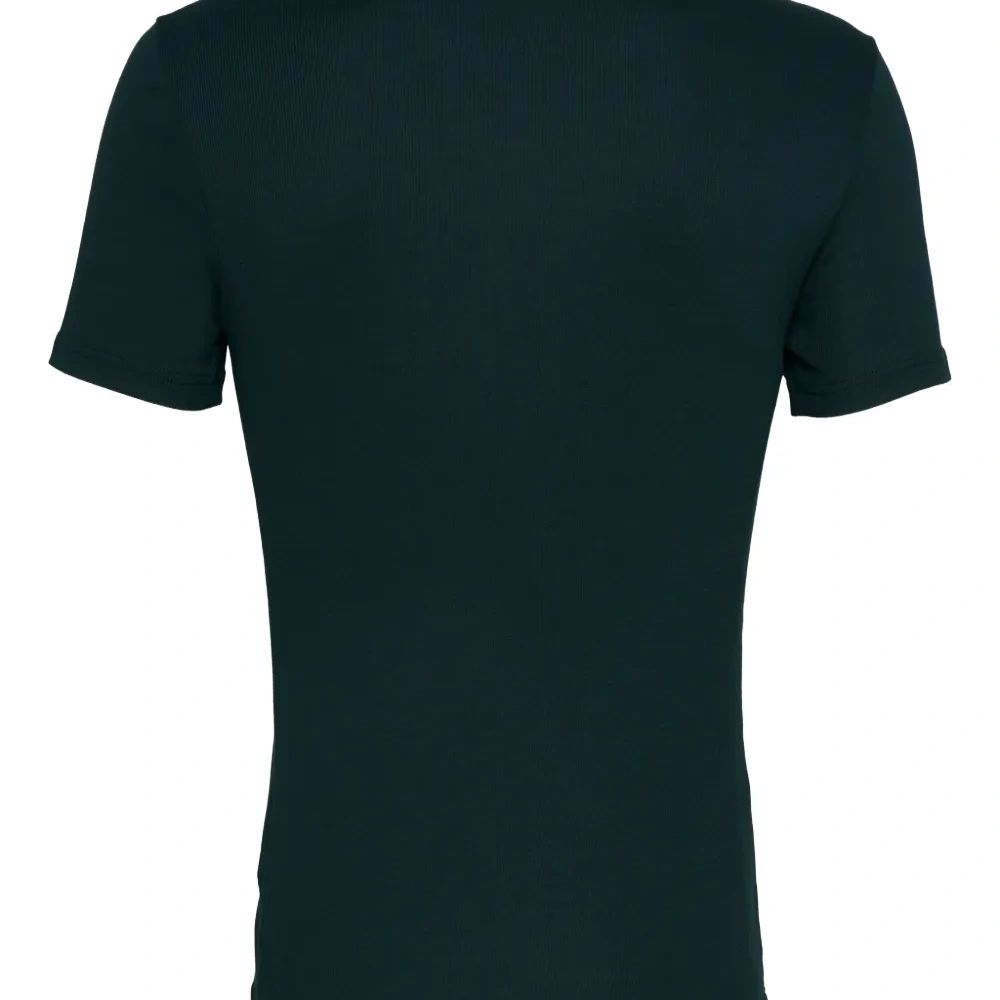 зеленый рубчатый трикотажный джемпер с круглым вырезом и короткими рукавами