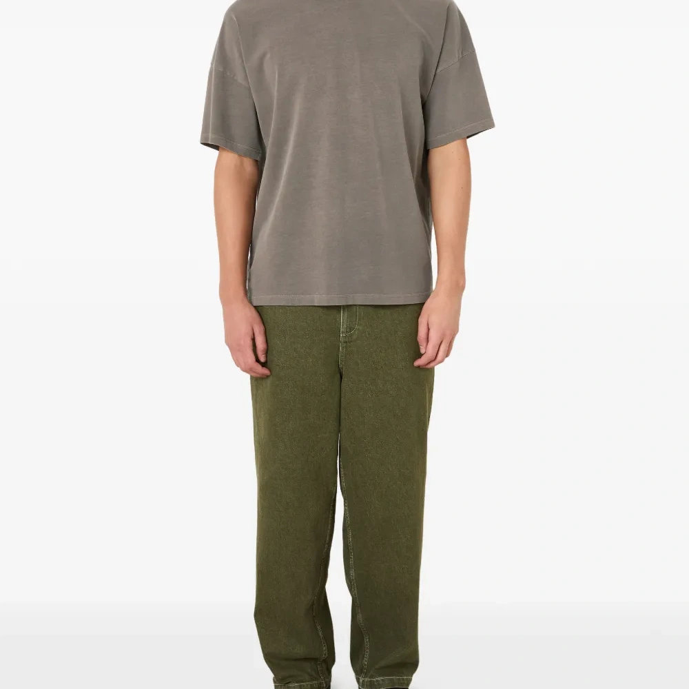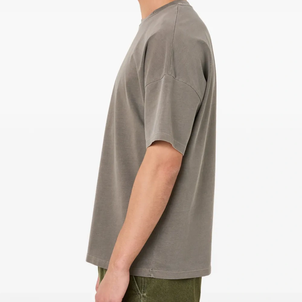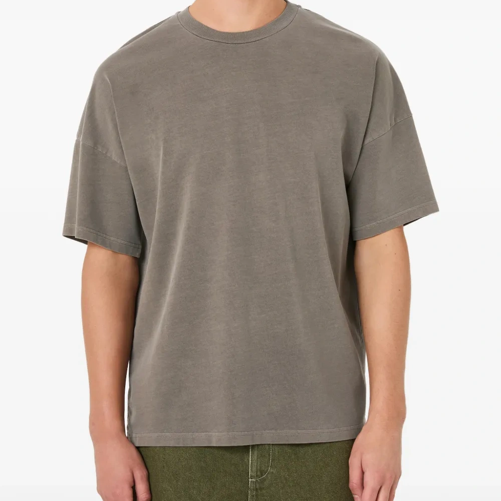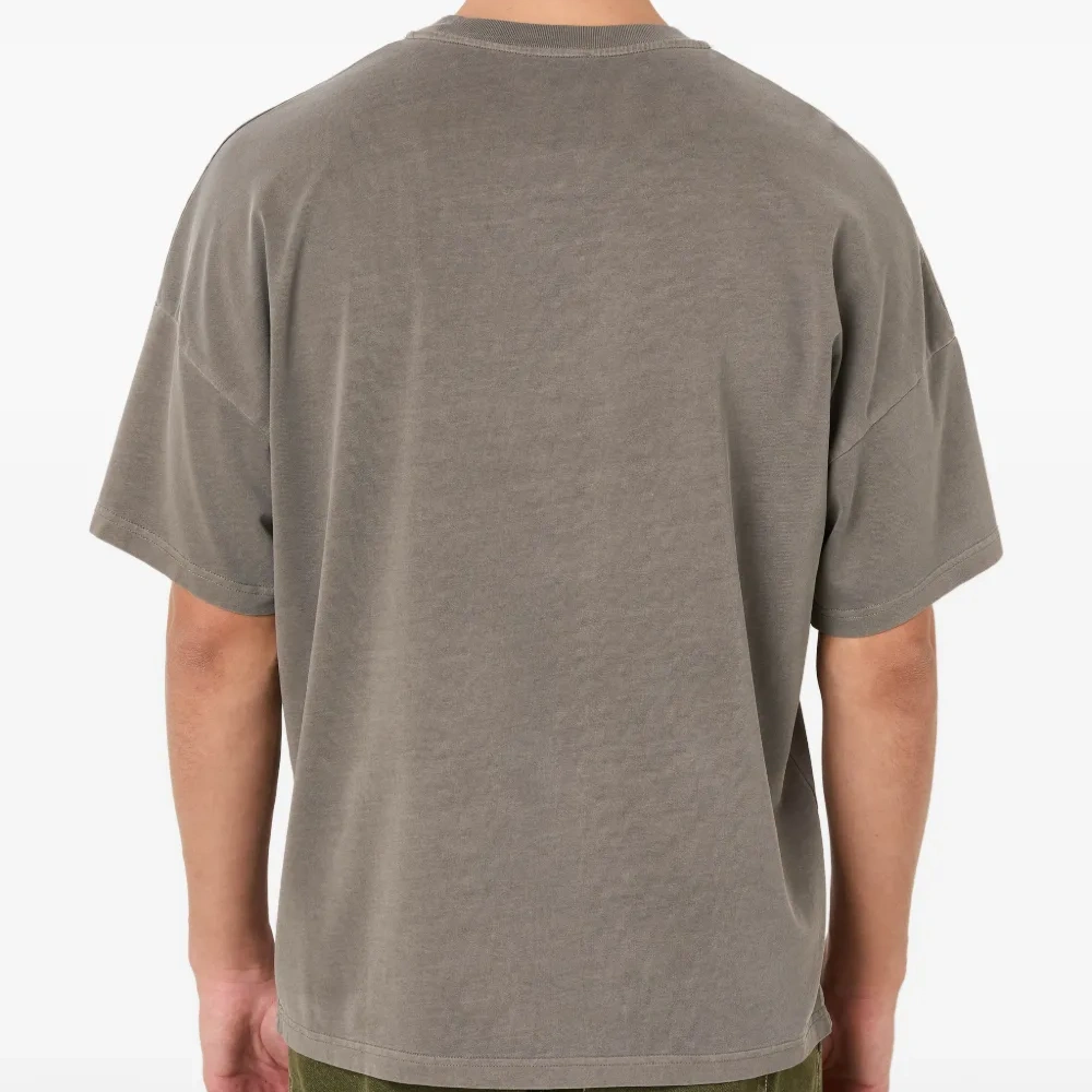 коричневый (сепия) топ с короткими рукавами, круглым вырезом и тональной прострочкой