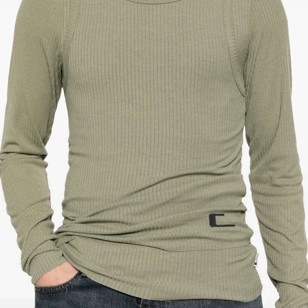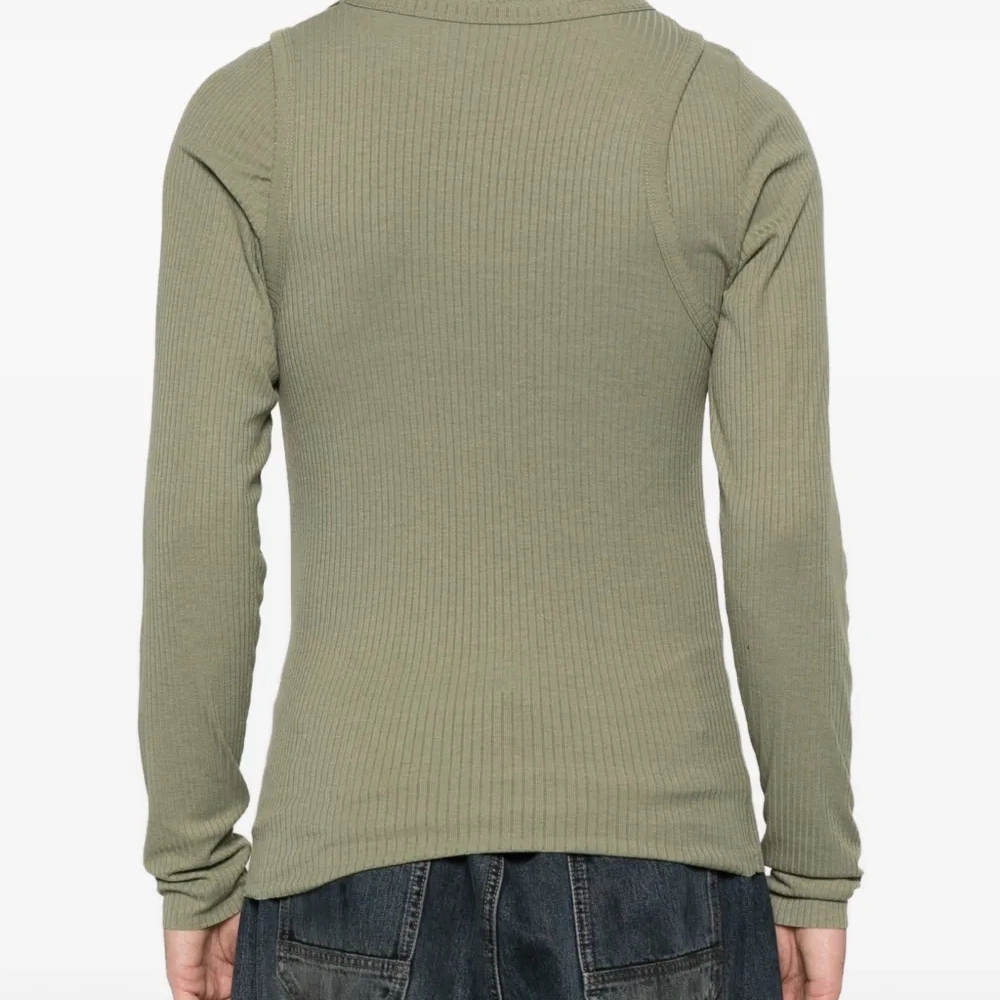 зеленый вязаный комплект в рубчик: круглый вырез, длинные рукава, логотип, безрукавку можно носить отдельно, два предмета