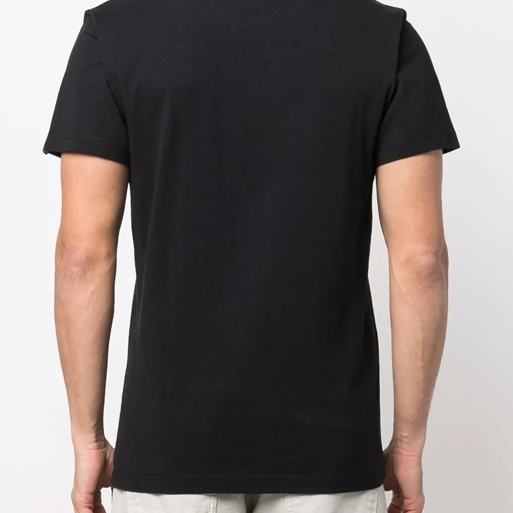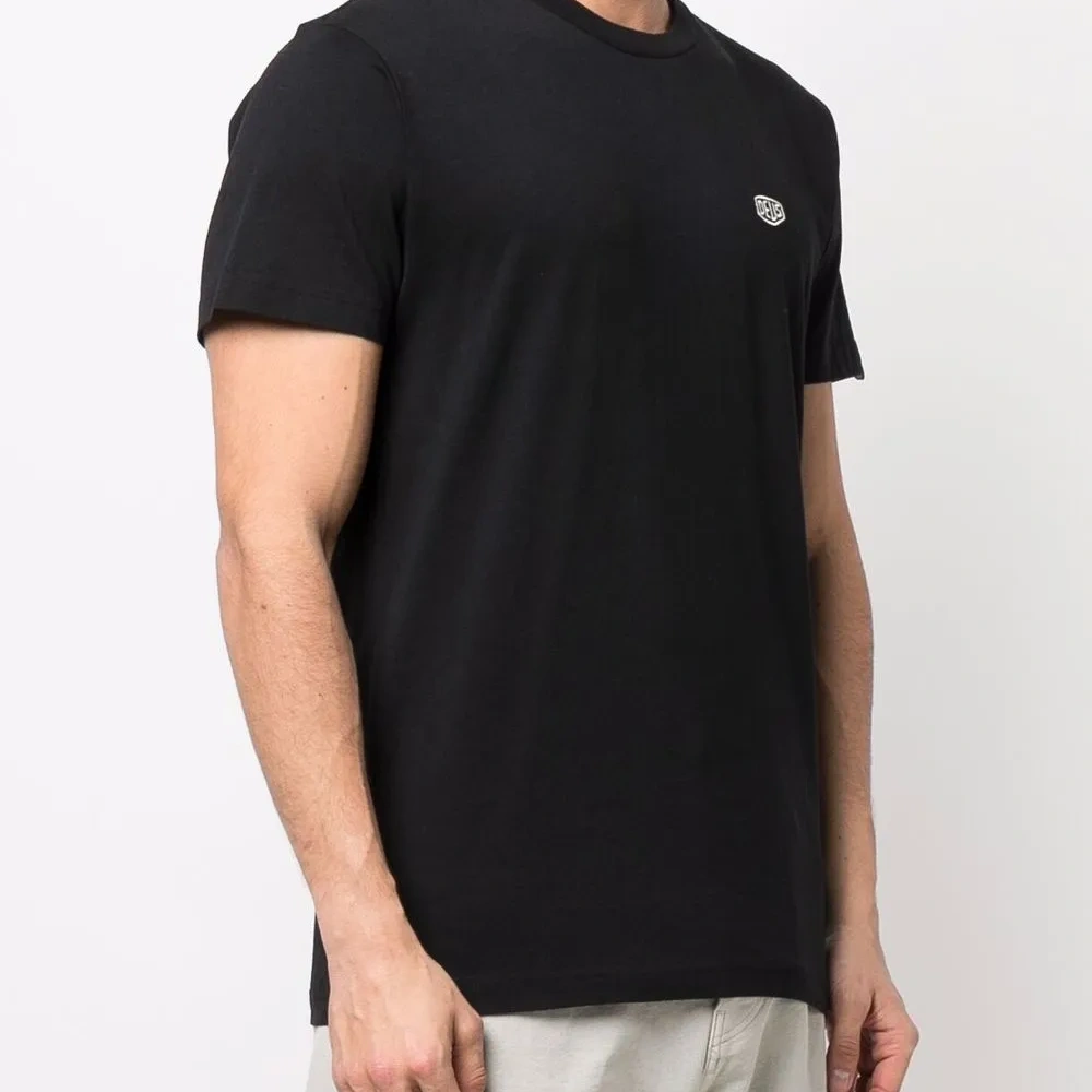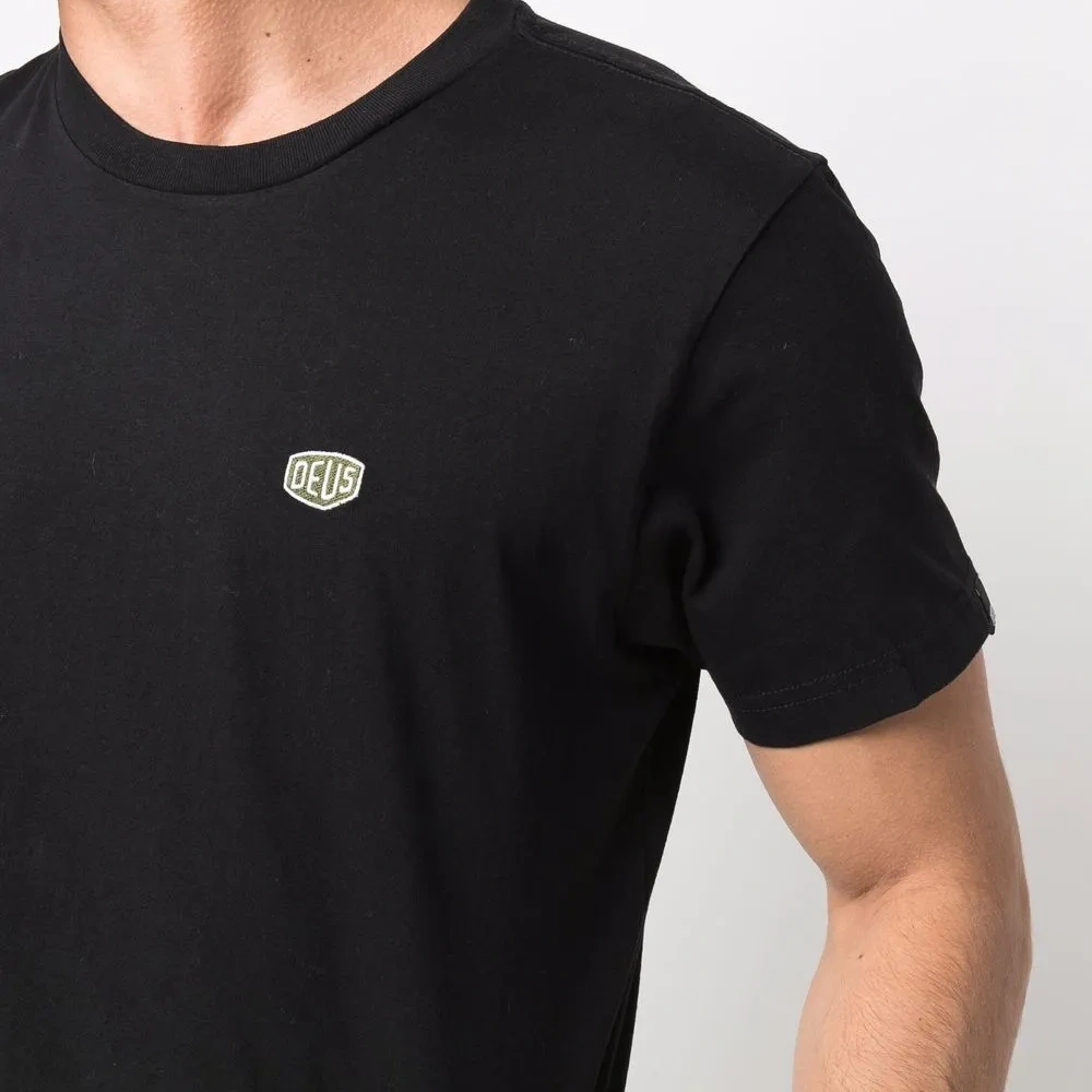 Нашивка с логотипом на груди, круглый вырез, короткие рукава и прямой подол. Цвет: черный.