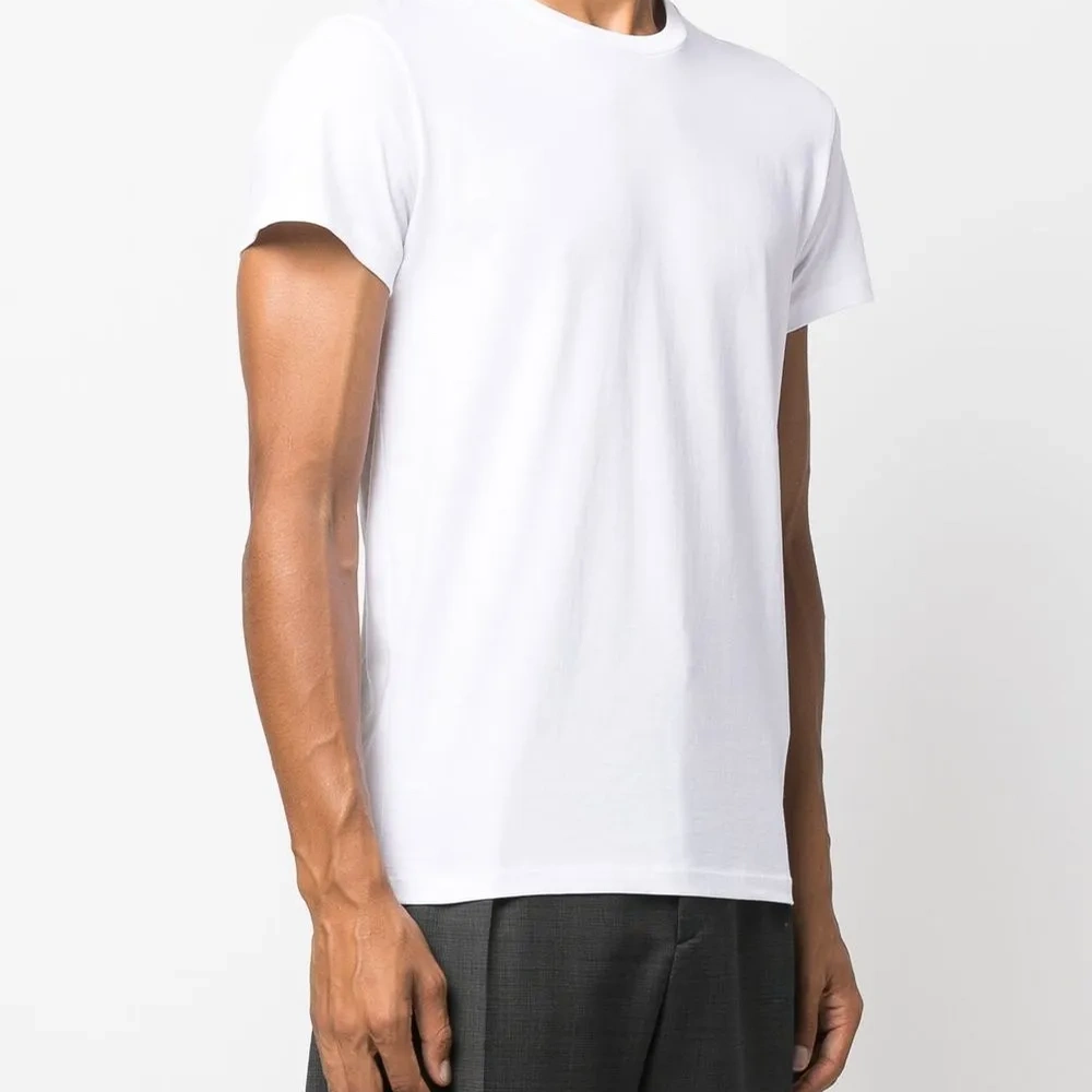 Белый, хлопок, круглый вырез, короткие рукава и прямой подол.