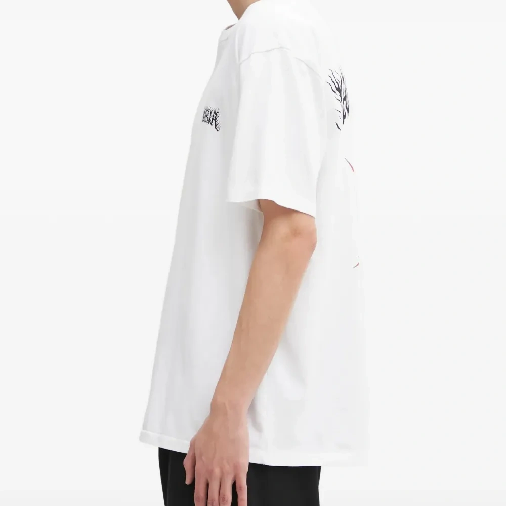 белая футболка с графическим принтом, круглым вырезом и короткими рукавами