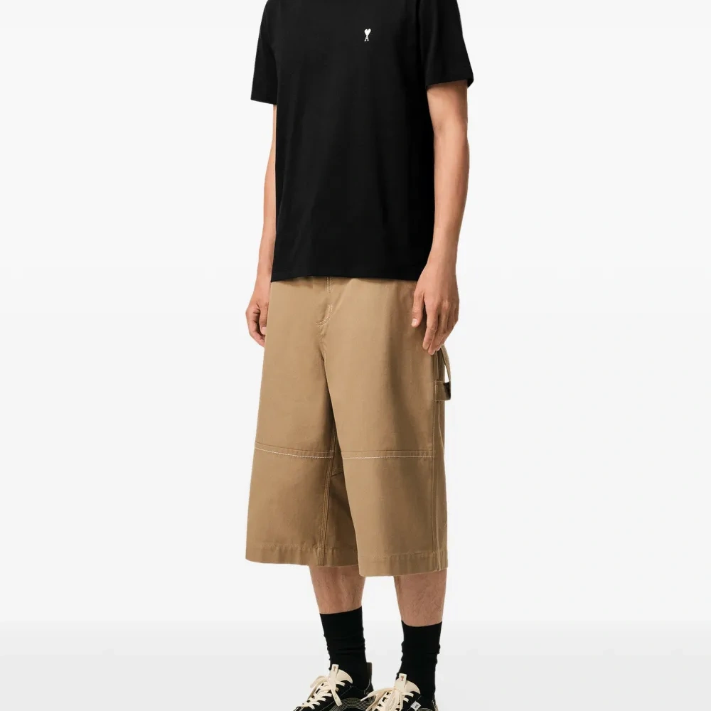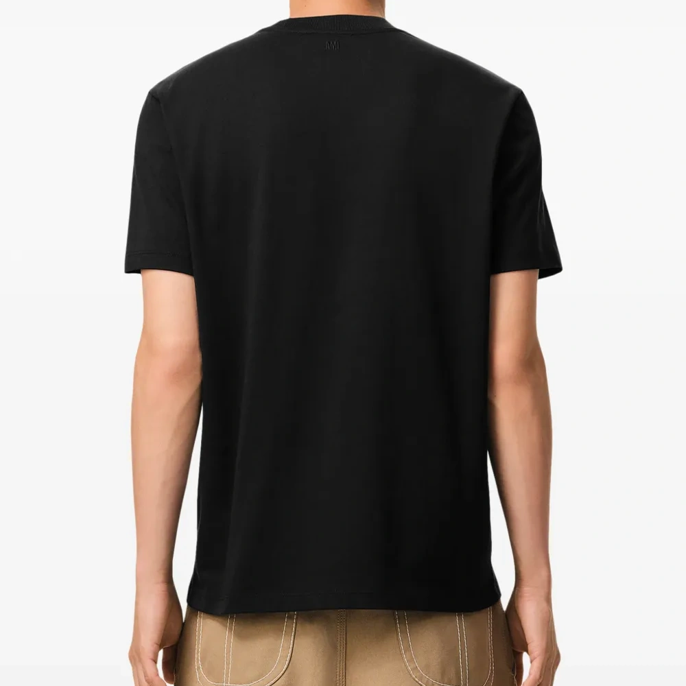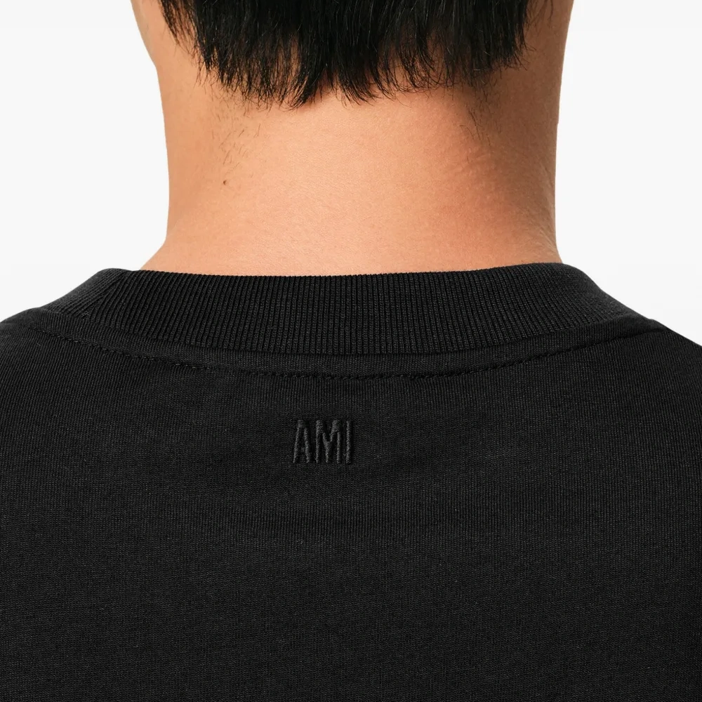черная футболка с вышитым логотипом, круглый вырез, короткие рукава