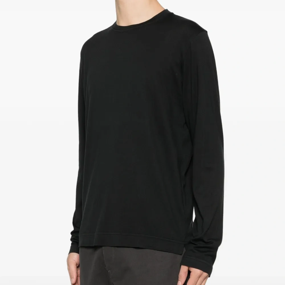 черный, длинные рукава, круглый вырез горловины, ребристый нижний край, ребристые манжеты