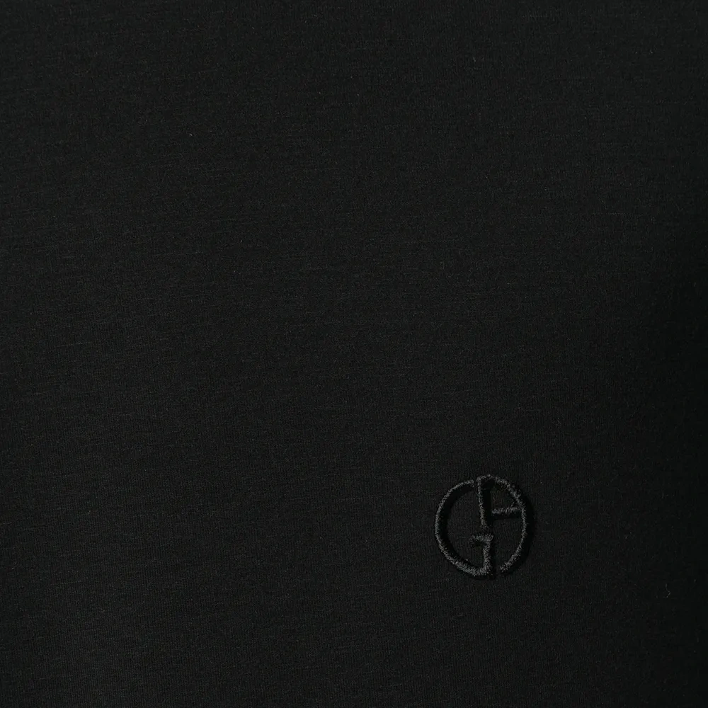 Футболка кроя слим от Giorgio Armani (Джорджо Армани). Круглый вырез с окантовкой, вышитый логотип на груди, прямой подол, короткие рукава и внутренняя вставка с логотипом.