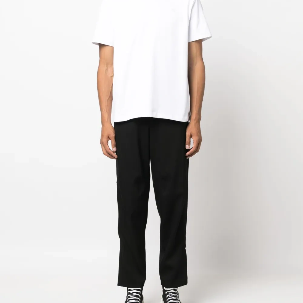 Белый, хлопок, вышитый логотип на груди, круглый вырез и короткие рукава.